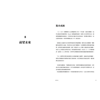 最後,本書最後還有一章「前望未來」,透過何壽川個人和永豐餘正在研發的最尖端科技視野,展望人類生活,從衣著、住屋、交通工具的各種新變化的可能,以及臺灣企業可以如何在連結草根中,參與這些新的機會。