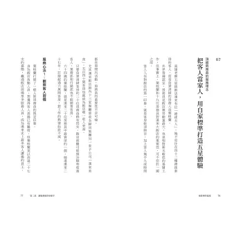 本書精選20則精彩故事,從米其林外場的專注觀察,到台灣庶民服務者的溫柔韌性,在這裡沒有艱澀道理,只有真實的人、真實的挑戰,以及那些第一線才懂的眉眉角角。與你共享:服務業大前輩累積數十年的「小祕訣」。
