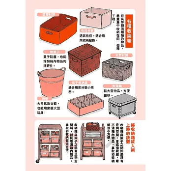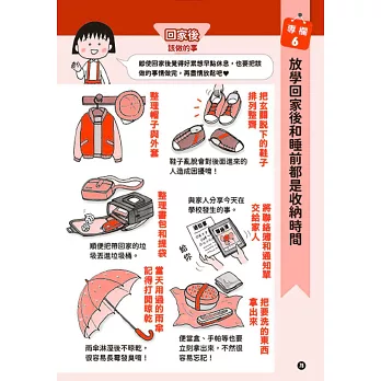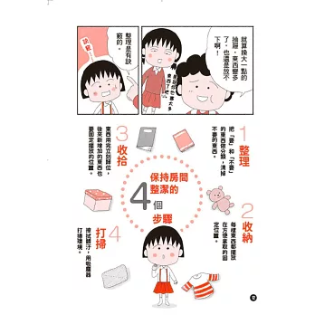 從房間、書包到大腦,小丸子用五步驟教孩子建立生活秩序。 例如:用「暫存箱」保存難取捨的東西、不亂塞東西、懂得取捨。