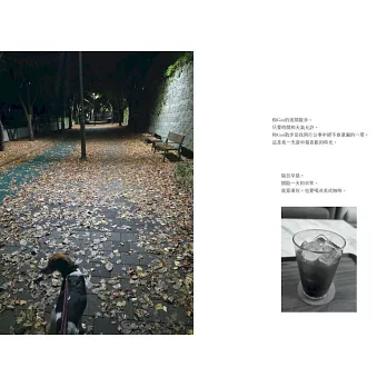 他邀請讀者進入他的日常——與狗狗Guri相伴的生活、喜愛的電影、清涼的啤酒與冰美式、靜謐的夜晚⋯⋯是這些看似重複而微小的片刻,成為他表演及創作的靈感來源,也支持著他克服內在的恐懼,迎接新的挑戰。