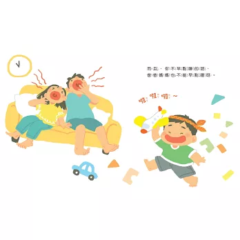 ◆故事情境貼近真實生活,父母超有感:睡覺時間到了,孩子卻還玩得不亦樂乎,捨不得放下手上的玩具、關掉正在看的卡通、闔上看到一半的故事書……,而媽媽爸爸已經精疲力盡!這不正是家長和孩子每天上演的對話嗎?本書情境貼近日常,直指親子關係中亟需處理的熱門議題,引起家長共鳴。