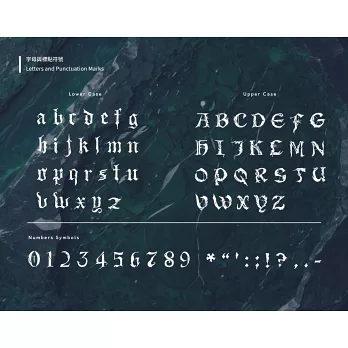 全套字體包含 26 個英文字母大小寫、10 個阿拉伯數字、10 個常見標點符號,