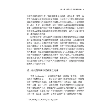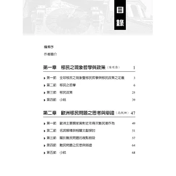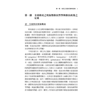 本書以觀察全球化浪潮下歐盟、美國、亞洲地區以及臺灣人口跨境流動與移民管理政策作為核心。由於移民問題已成爲21世紀最重要且相當複雜,甚至敏感的國際議題之一。移民問題牽涉國家安全、主權意識、文化融合與價值認同、人權保障與政府治理等多重面向,無法僅從勞動力或經濟層面瞭解移民議題。本書最大特色在於以宏觀視野對重要移民問題作出細緻分析,不只探究移民現象的結構性因素,亦思考移民人權與所謂人道價值之辯論,以及對國家治理與移民政策可能帶來之挑戰。藉由本書讀者得以瞭解移民問題與生存正義、資源分配、公民資格倫理之間的深層關聯。其次,本書結合哲學思辨、人權法制、國際規範與國家政策等脈絡,呈現跨領域研究成果,尤其關注臺灣在邁向多元社會過程中,如何兼顧國家利益、社會正義與人權保障間之衡平。讀者皆可從本書獲得具理性思考與人道精神的觀點,藉此理解移民與多元社會建構之藍圖。