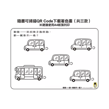 看似簡單的繪本,蘊藏多種玩法與互動方式,更能結合日常生活中的真實體驗,快來透過這本書和孩子一起認識路上跑來跑去的車子,享受親子對話與遊戲的共讀時光吧!