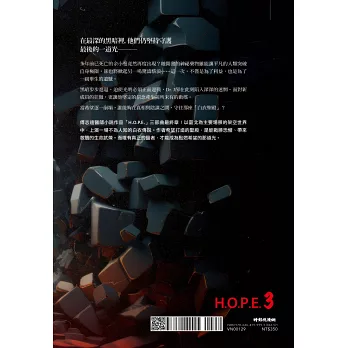 傅志遠醫師小說作品「H.O.P.E.」三部曲最終章!以臺北為主要場景的架空世界中,上演一場不為人知的白衣傳說。作者希望打造的聖殿,是能戰勝恐懼、帶來救贖的生命試煉。而唯有真正的醫者,才能成為點燃希望的那道光。