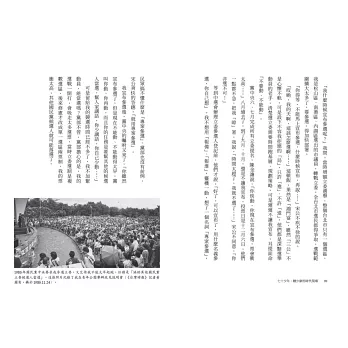 本書記錄他如何親臨歷史轉捩點:登高一呼,號召四大唱片公司與群星以歌聲援民運、與民進黨施明德前主席喝「大和解咖啡」,及近年推動藍白合的艱難協商。橫跨政治、社會、文化、新聞的現場,處處都是他與時代正面交鋒的印記。