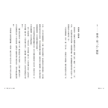 作者于國華繼《學美之旅》走訪各地接觸美好的人事物廣受回響後,回歸最初的感動,以「如何培養審美的心」為著墨,回望個人生命經驗,透過文字記錄日常生活的體悟,審視內心為美觸動的每個瞬間。從打開五感到覺察感受,進而將欣賞轉化為創造,在生活中練習感受光影、氣味、節奏、溫度,讓審美成為自我與世界對話的途徑。