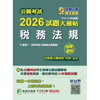 此書適用於【公職考試】,想要成為在公家機構從事行政類工作的就業族群,大多會選擇報考此項國家考試,作為進入財稅行政等行政類公務員的首要門檻。試題大補帖系列提供報考這類考試的考生,能有一本給【稅務法規(含概要)】考科的考前衝刺歷屆試題演練書,考生只需購買一本書,即可抓住法學知識考科的重點題型。