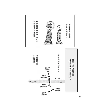本書主角,佛陀的弟子阿難,與作者化身的角色點點,