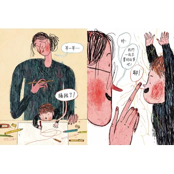 「我也想一起畫!」記得兒子還小的時候常常專挑趕稿的時候這麼說。「來畫個故事吧!」我也曾經對幼小的孩子這麼說,天馬行空、豐富有機的線條飛舞,這本繪本喚起那段美好時光。──多頭蠟燭燒燙燙的貓魚媽媽(繪本作家)