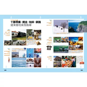 札幌、小樽、函館、旭川、富良野、美瑛、洞爺湖、登別、知床、稚內,道央、道南、道北、道東重點一次掌握。