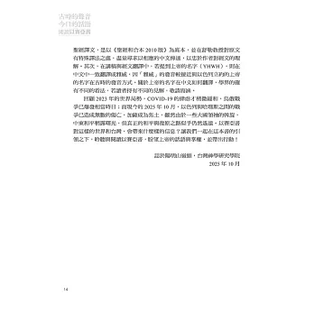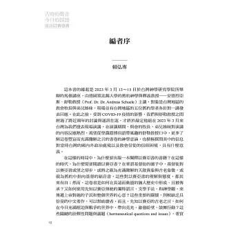 德國萊比錫大學舊約教授安德烈亞斯・舒勒於2023年3月前來台灣神學研究學院擔任馬偕講座的講師,內容極為豐富精闢,引發與會者的熱烈迴響。如今,經過台神同工細心地翻譯、整理、編輯,講座內容以《古時的聲音,今日的話語——閱讀以賽亞書》為題出版成書,真是可喜可賀,相信必能造就且裨益眾多讀者。
