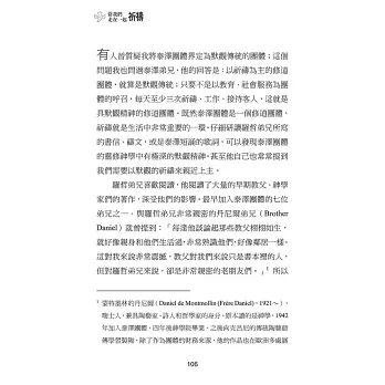 對許多人而言,泰澤或許只是一種歌唱或祈禱形式,但在本書中,作者講解了當前泰澤祈禱方式和泰澤團體誕生的歷史背景,並闡明了泰澤祈禱如何引領人們走向修和與合一。正如作者清楚地指出,我們的團體從未試圖建立固定的祈禱模式;相反地,我們努力簡化傳統的修道院祈禱,使每個人,包括那些對祈禱、信仰或聖經知識不熟悉的人,都能輕鬆地參與其中。這樣的祈禱,讓來自天主教、東正教和各種新教傳統的男女老少,都能在跨越國家、文化和語言界線中,體驗共融的美好。