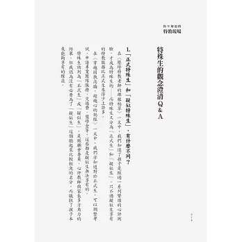 ● 本書收錄【特殊生的觀念澄清Q & A】,解惑十大常見提問: