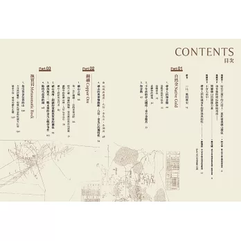 全書以河畔淘金起始,從大地構造切入,演示島嶼東北方為何有豐饒的礦,以及百年前懷抱淘金夢的人們如何來到這裡,落地生根;在歷史浪潮下,因地質、地形與自然環境影響的一代代礦山人,在此開展出百款生活樣貌,也在山城留下美麗與惆悵。