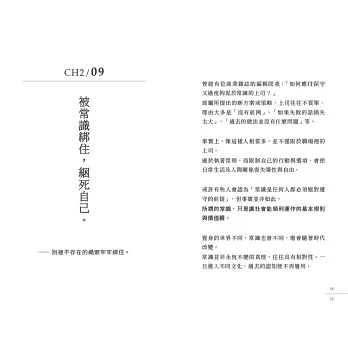 此外,書中還提供各種契機,讓讀者能重新審視那些折磨自己的執著與習慣,進而豁然開朗。