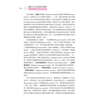 本書撰寫的出發點,主要是協助眾多結構方程模式的初學者,使用PLSSEM方法進行學術研究資料分析的應用能力,讓SEM的初學者能有效突破進行模型分析的困境,使其能快速應用PLS-SEM分析方法於學術研究或論文投稿。有鑑於此,本書將採用目前廣受歡迎且操作界面友善的SmartPLS軟體為實作工具,並以實例分析的具體操作,逐步帶領讀者理解PLS-SEM的理論架構與應用方式。