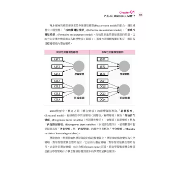 SmartPLS 是一套基於圖形化操作界面的PLS分析軟體,使用者無需撰寫程式語言即可建立測量模型與結構模型,並且可立即進行模型估計、結果分析與報告解讀。透過本書範例的引導,讀者將能輕鬆學會如何建立潛在變項、設定測量指標、執行模型估計、檢視效度與信度、進行路徑分析,以及其顯著性檢定等步驟,並學會解讀各項統計輸出報表。
