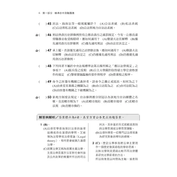 第二部分收錄最新試題及解析,保證時效最新、解析最精、收錄最全,歷年試題的統整,利於掌握考試最新脈動與命題方向。本書將近年試題一網打盡,毫不保留,經過名師詳解,類似的題目再出個一百次,也不害怕!輕鬆學習、快速理解,掌握命題趨勢,必定能在考場所向披靡!