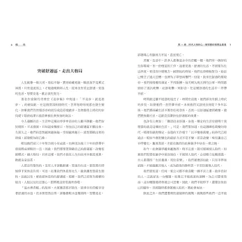 不同的人,對事物的認知範圍不一樣,不同的人,格局也不同。這本書運用多種技巧和方法提升你的格局,大量鮮活的案例,深入淺出的分析,讓我們明白:有了大格局,才有使命感,就不會為自已一時的得失計較,才會活得大氣,能成大事,勇於擔當,成為一個有使命感的人。你也終會醒悟:一個人來到世上,不能只為自已,只有放開胸懷、觀照全局,才能活出此生的價值、活出生命的意義。