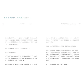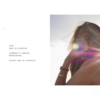 從單身時光裡的明媚與自在,到親密關係中的拉扯與磨合;從失戀後的疲憊與迷惘,到試著放過自己的那一刻,慢慢長成新的自己。那些不完美、那些嫉妒與脆弱的情緒,直到逐漸釋懷與轉念,她都以明朗而溫柔的文字,誠實記錄,也輕輕陪伴。