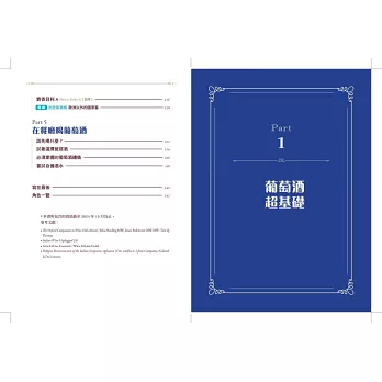 書中還收錄了葡萄酒入門者最想知道的基礎知識,例如:「如何讀懂酒標」、「選購時的小技巧」、「葡萄酒杯的選用」、「喝不完的葡萄酒如何保存」、「飲酒禮儀」等,將原本令人卻步的內容整理成一套清晰易懂的系統。