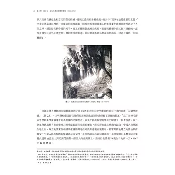 第二章討論文革時期的藝術。這個時期將中國版的社會主義現實主義推到了極端的紅衛兵藝術和精緻化的、政治的廟堂藝術,同時也有不同於這種主流藝術的另類藝術在此動蕩時期的堅持。