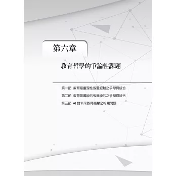 一般「哲學」的範疇主要包括人性論(旨於論述人性善惡之課題)、形而上學、知識論、價值論(旨於論述道德哲學等課題)等領域,不同族群或思想家或學派持或同或異或同中有異或異中有同之觀點,遂產生不同的教育理論與實務;惟有的哲學觀否定「形而上學」之存在與價值,因此,也就產生另類的教育理論與實務。