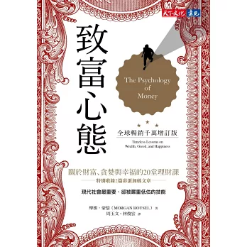 在《致富心態》中,摩根.豪瑟分享許多短篇的理財故事,探討人們思考金錢的方式,並傳授致富的技巧,你會學到: