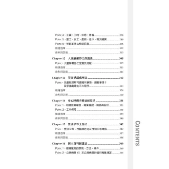 我從來沒想過,人生有一天會編排一本考試用書,還成了勞動法令的老師,現在看到法條時的反射念頭就是「這個法條還有什麼方便的記憶技巧?」很累人但有很意思!尤其看到很多人在準備考試過程中,有些啟發和頓悟,突然覺得這本書的出版很有意義,連我都覺得,「如果早一點知道這些方法,不知道有多好…。」