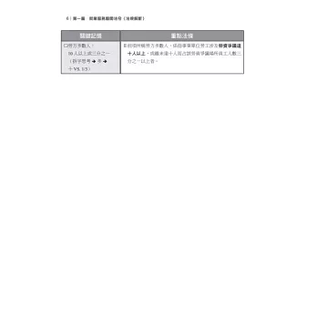 應用工具和方法有效推理並理解法律條文內容,透過歸納、分析、拆解、重組,一步步教你「三角關係思考法」搭配「拆字記憶法」及「彩虹記憶法」和一般人常用的「事物聯想法」、「口訣記憶法」去記住煩人的數字與文字。