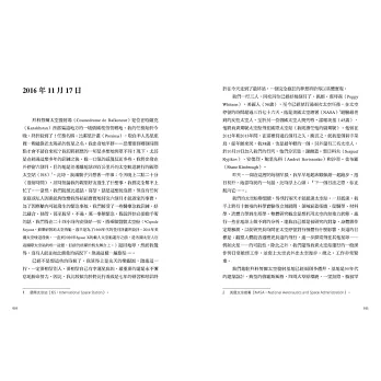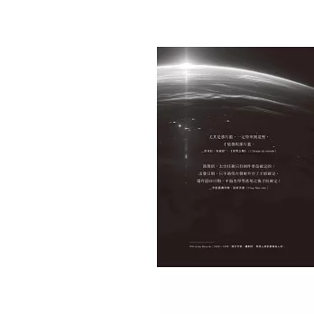 《我的無重力人生》不僅是一位太空人的生命記錄,也為嚮往太空、準備投入這個領域的年輕世代,提供深刻而誠懇的啟發。——國家太空中心(TASA)主任 吳宗信