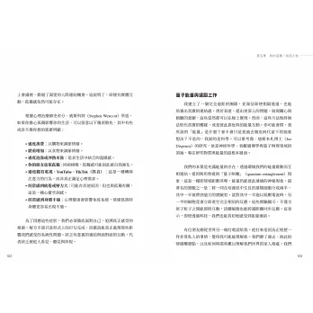 「我一直想抓出佩特拉.維爾澤波爾簡報中的學習重點,現在她幫我整理好了!這本書為每個想掌握自己與科技關係的人提供了及時且發人深省的指引。佩特拉以她在心理健康領域的專業,探討當今最迫切的挑戰之一:科技如何形塑我們的生活、思維與人際關係。她以清晰而貼近人心的風格,不迴避棘手的問題,邀請讀者深切反思自己的科技使用習慣,並採取行動,培養更健康、更有意義的人際連結。這本書在當下比以往任何時候都更迫切需要。」