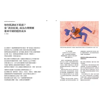 合約在身,多數受訪者在台灣與中國不同系統間人格分裂地運作著,夾雜不安與受怕,煎熬與孤獨。那些曾在90年代或00年後一起聊音樂還曾一起把酒言歡的人,如今會不會成為「舉報」你的人?那些在微博或各種社群媒體裡的發言與被代言,會不會讓你一夕炎上翻車?
