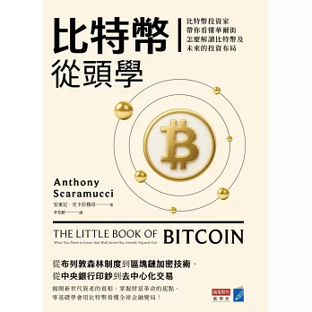 3.整合金融與加密貨幣視角,全方位掌握新時代的貨幣:書中把比特幣放入整體金融體系的結構中來看,而不把它孤立成一個特別的技術,這樣的分析視角能讓讀者更好理解比特幣的潛在影響力、數位貨幣的金融用途,以及未來可能的發展優勢。