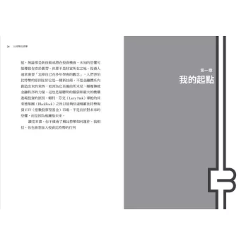 2.如幣圈故事般精采的投資入門書:作者本身的投資圈背景,使得本書能夠在「普通讀者」與「華爾街視角」之間建立橋樑──引領門外漢的你—窺投資圈的內部觀點與動態,了解真正的「從業者觀點」。