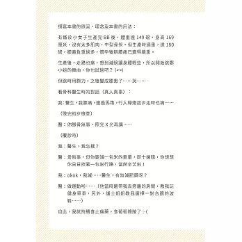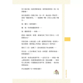 ● 將經驗糅合知識,寫出43個減肥心得,為各位減肥人士解惑指路。