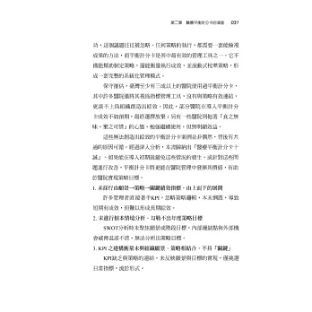 在少子化與高齡社會的雙重挑戰下,健康產業面臨高度不確定性與治理複雜度。如何在快速變動的環境中維持品質、提升效率並兼顧永續,已是管理者必須面對的核心課題。本書延續《醫療平衡計分卡》的理念,作者以多年在醫院與長照體系推動策略管理的經驗,結合永續觀點,提出更具前瞻性的策略管理實踐方法。