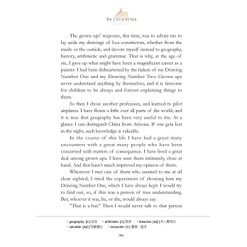 大人們這次看完的反應是叫我把這些蟒蛇圖,不管是外觀或透視的圖都丟掉,只要好好地學習地理、歷史、算術和文法就