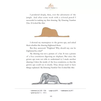 ● picture [n.] 圖片、畫 ● call [v.] 稱作、叫做 ● forest [n.] 森林 ● act [n.] 行為、動作 ● copy [n.] 複本、抄本 ● drawing [n.] 畫、圖畫 ● swallow [v.] 吞嚥 ● primeval[adj.]原始的
