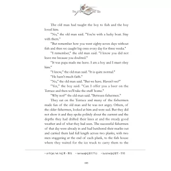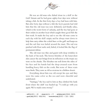 ●skiff [n.] 輕舟;小艇 ● stream [n.] 溪,小河 ● definitely [adv.] 明確地;確定地 ●gaunt [adj.] 憔悴的;骨瘦如柴的 ● benevolent [adj.] 仁慈的,慈善的
