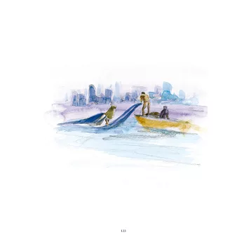 He was an old man who fished alone in a skiff in the Gulf Stream and he had gone eighty-four days now without taking a fish. In the first forty days a boy had been with him. But after forty days without a fish the boy's parents had told him that the old man was now definitely and finally salao, which is the worst form of unlucky, and the boy had gone at their orders in another boat which caught three good fish the first week. It made the boy sad to see the old man come in each day with his skiff empty and he always went down to help him carry either the coiled lines or the gaff and harpoon and the sail that was furled around the mast. The sail was patched with flour sacks and, furled, it looked like the flag of permanent defeat. The old man was thin and gaunt with deep wrinkles in the back of his neck. The brown blotches of the benevolent skin cancer the sun brings from its reflection on the tropic sea were on his cheeks. The blotches ran well down the sides of his face and his hands had the deep-creased scars from handling heavy fish on the cords. But none of these scars were fresh. They were as old as erosions in a fishless desert. Everything about him was old except his eyes and they were the same color as the sea and were cheerful and undefeated. "Santiago," the boy said to him as they climbed the bank from where the skiff was hauled up. "I could go with you again. We've made some money."