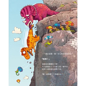 恐龍王國地圖的最北邊有一片高山,沒有人知道是什麼樣子。這天,提米心血來潮,拉著達達一起去探索山外的世界。達達也很好奇,鼓起勇氣跟著一起去探險。