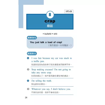 ◆本書收集了老外最常用來表達,喜怒哀樂的生活會話和口頭用語,