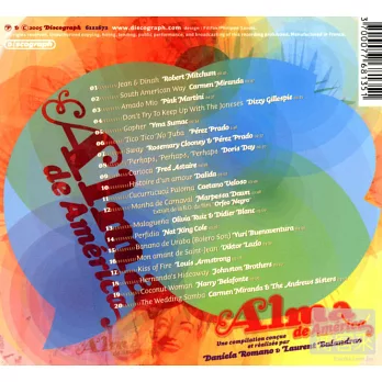 本張精選輯由法國知名DJ Daniela Romano和Laurent Balandras成功塑造「花神咖啡館」的法式香頌系列後,再創全新熱情南美風格、百分百拉丁情人舞蹈音樂的時尚沙龍精選輯,融合了當代典雅與華麗復古的交錯情境,時而狂野奔放、時而靜謐溫暖,隨著歡樂的音樂旋律,彷彿時空倒溯回到五、六○年代的南美奢華的沙龍俱樂部裡,又彷彿悠遊在當今花都巴黎時尚最IN的Lounge Bar裡,完美和諧的DJ混音精選、復古與流行之間的最佳極致表現!橫跨五、六○年代到二○○三年、精選20位拉丁情人歌手、20首最能代表熱情拉丁音樂舞蹈的著名曲目,每一位歌手都是巨星中的巨星,每一首歌曲都是經典中的經典具有跨時代的意義,一位歌手代表了一種的音樂風格或拉丁舞蹈;專輯由一代影壇巨星勞勃‧米契(Robert Mitchum)快樂唱起加力騷舞曲"Jean & Dinah"開始、帶領樂迷舞動熱情進入拉丁情人的性感世界;接著是熱情如火的巴西森巴皇后卡門‧米蘭達(Carmen Miranda)經典曲目"South American Way";超級樂團紅粉馬丁尼(Pink Martini)成名代表作"Amado Mio"強烈拉丁情挑風格、彷彿麗泰海華絲(Rita Hayworth)性感再世;兩位美國甜心歌手蘿絲瑪莉‧克隆尼(Rosemary Clooney)的"Sway"和桃樂絲‧黛(Doris Day)的"Perhaps, Perhaps, Perhaps"堪稱最佳拉丁名曲之一;歐洲第一位百萬白金銷量傳奇女歌手妲莉達(Dalida)的冠軍曲"Histoire d’un amour"全球傳唱五十年;巴西著名音樂詩人蓋塔諾‧維洛索(Caetano Veloso)的鴿子歌"Cucurrucucu Paloma" 極度親密的美麗詩境、美聲演唱紅遍全世界;由裘賓(Carlos Jobim)作曲、珮莎‧唐恩(Marpessa Dawn)所演唱的"Manha de Carnaval"讓巴沙諾瓦音樂流行全世界;一代爵士情歌天王納金高(Nat King Cole)的"Perfidia"融合拉丁曲風迷人樂聲讓人沉醉;發燒友最愛的拉丁歌王哈利‧貝拉方(Harry Belafonte)的冠軍曲"Coconut Woman"熱情奔放的性感歌聲,拉丁加力騷舞Calypso曲風、狂野誘人!