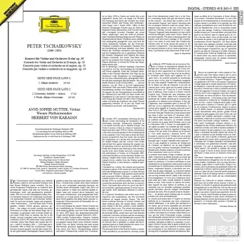 本張專輯為1988年薩爾茲堡音樂節實況錄音,由小提琴女神慕特與指揮帝王卡拉揚率領維也納愛樂共同演出。在這場音樂會中,卡拉揚刻意放慢樂曲行進速度,與慕特細膩的小提琴音色相輔相成,展現出《柴可夫斯基:小提琴協奏曲》中華麗與哀愁的唯美氣氛。而這份演出錄音也是卡拉揚與慕特兩人所合作錄製的最後一張唱片,因隔年就在卡拉揚完成了此生的最後一張實況錄音演出《布魯克納:第七號交響曲》後不久即離開人間,也因此在某種程度上本專輯也深具歷史意義。