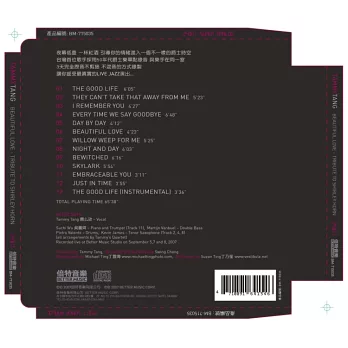 如They can’t take that away from me, I remember you, Every time we say goodbye..,每首經典樂曲都投入了內心豐富情感,再以最真誠與美好的聲音重新詮釋,使聽者能深深感受到爵士樂的獨特風格。