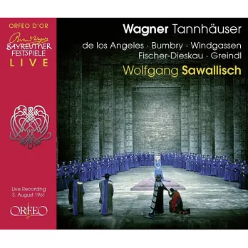 C 888 143 DIt was only in the following Festival summer that Sawallisch’s achievements on the rostrum were particularly well documented in audio form, with Wolfgang Windgassen as the title hero and, alongside him, Grace Bumbry in her international breakthrough role as the “black Venus”. But in 1961, Victoria de los Angeles sang Elisabeth and Dietrich Fischer-Dieskau (at his last Bayreuth Festival) the role of Wolfram. As the critics noted, the opening night suffered not just from what were presumably the usual first-night tension and nerves, but also from the adverse, rainy weather that dogged the first week of the Festival and that meant the common cold was doing the rounds. The discovery in radio archives of a Tannhauser from the second of the subsequent performances is thus a real find, and it is being released on CD in 2014 in the series of historical recordings of the Bayreuth Festival. By a stroke of luck, all the protagonists were on form on the evening of 3 August 1961, as we can now hear for the first time. This allowed Wolfgang Sawallisch to maintain his stringent reading of the Tannhauser score. His tempi were taut, but still allowed for a decisive hint of elasticity, with slight rubati and adjustments according to the phrasing of the individual singers. As so often in a cast that was assembled in large part by Wieland Wagner, we can here discern a balance between lyrical voices and a subtle, psychologically precise art of characterisation – which is particularly the case with Victoria de los Angeles, who sings the role of Elisabeth in a songlike manner, without any undue intensification towards a youthful-dramatic vocal interpretation of the role (which some of her colleagues have taken to excess). Dietrich Fischer-Dieskau outdoes himself once again as Wolfram, and the “parting couple” at the outset – Grace Bumbry and Wolfgang Windgassen – here achieve a perfect balance of love’s lust and sorrow (perhaps better than they ever had before, or ever would again). Sometimes a second attempt is worth more than twice the trouble.