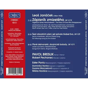 Having explored songs by Mozart and Schubert on previous acclaimed albums, Slovak tenor Pavol Breslik now presents works by Czech composer Leos Jana ek in his fourth album for ORFEO.
