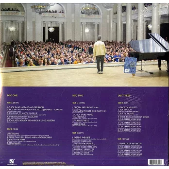 本輯將2018年於巴黎、柏林與Clearwater的現場演出,集結為三張黑膠。從史卡拉第、蓋希文、莫札特、孟克到比爾•艾文斯以及自己的經典創作「Children's Song」,流暢的演奏中,處處讓人驚豔。其中還有兩位新一代鋼琴家Charles Heisser與Yaron Herman分別與大師即興彈奏二重奏樂曲。美妙的樂音演出,不論是古典或爵士樂迷,都是首選之作。